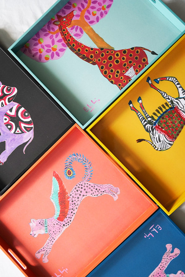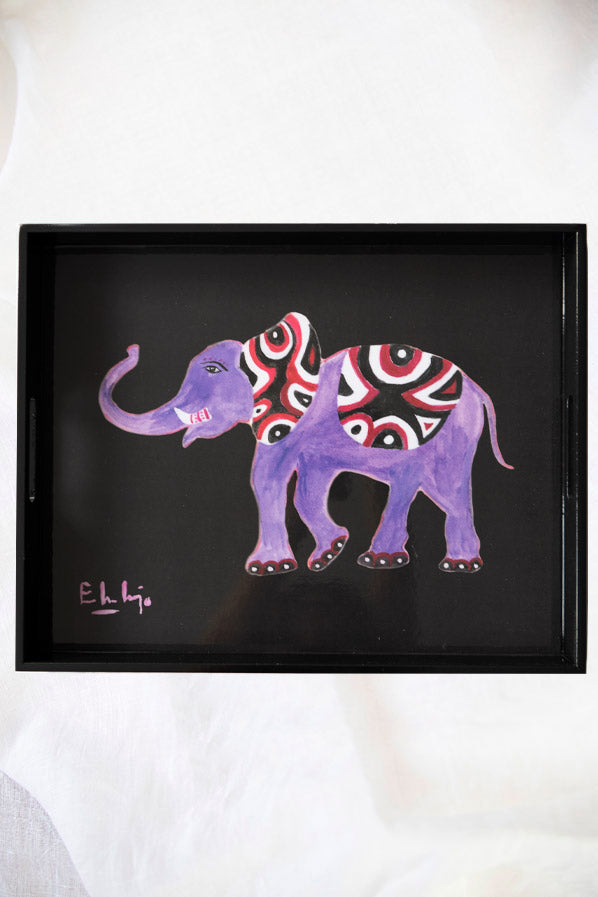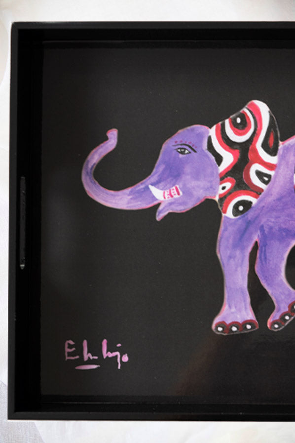 Bandeja Lacada con pintura de Elefante de Eugenia Martínez de Irujo – Edición Limitada y Firmada.
