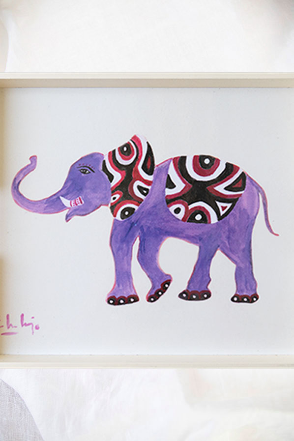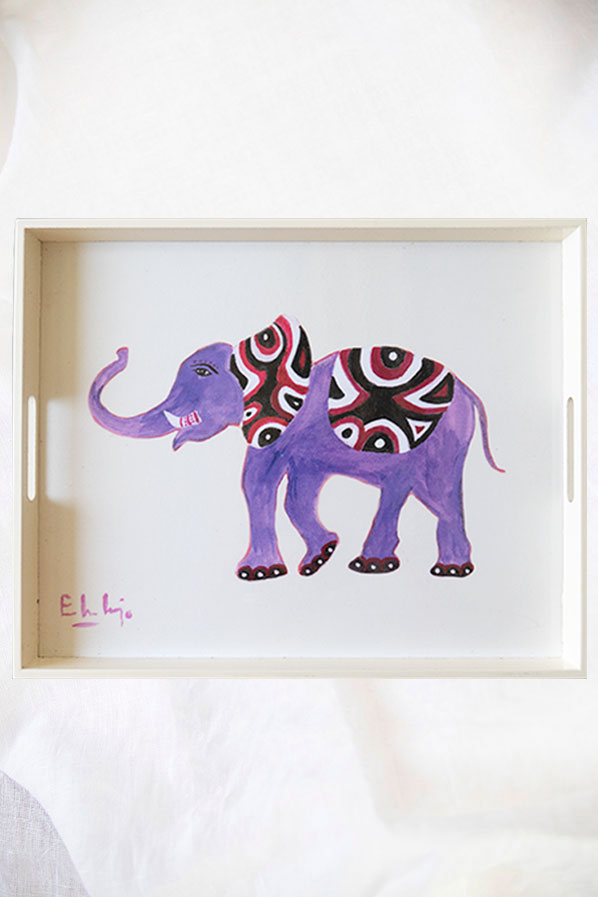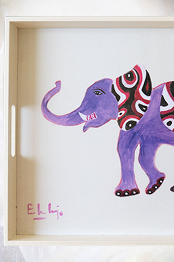 Bandeja Lacada con pintura de Elefante de Eugenia Martínez de Irujo – en color blanco hueso Edición Limitada y Firmada.