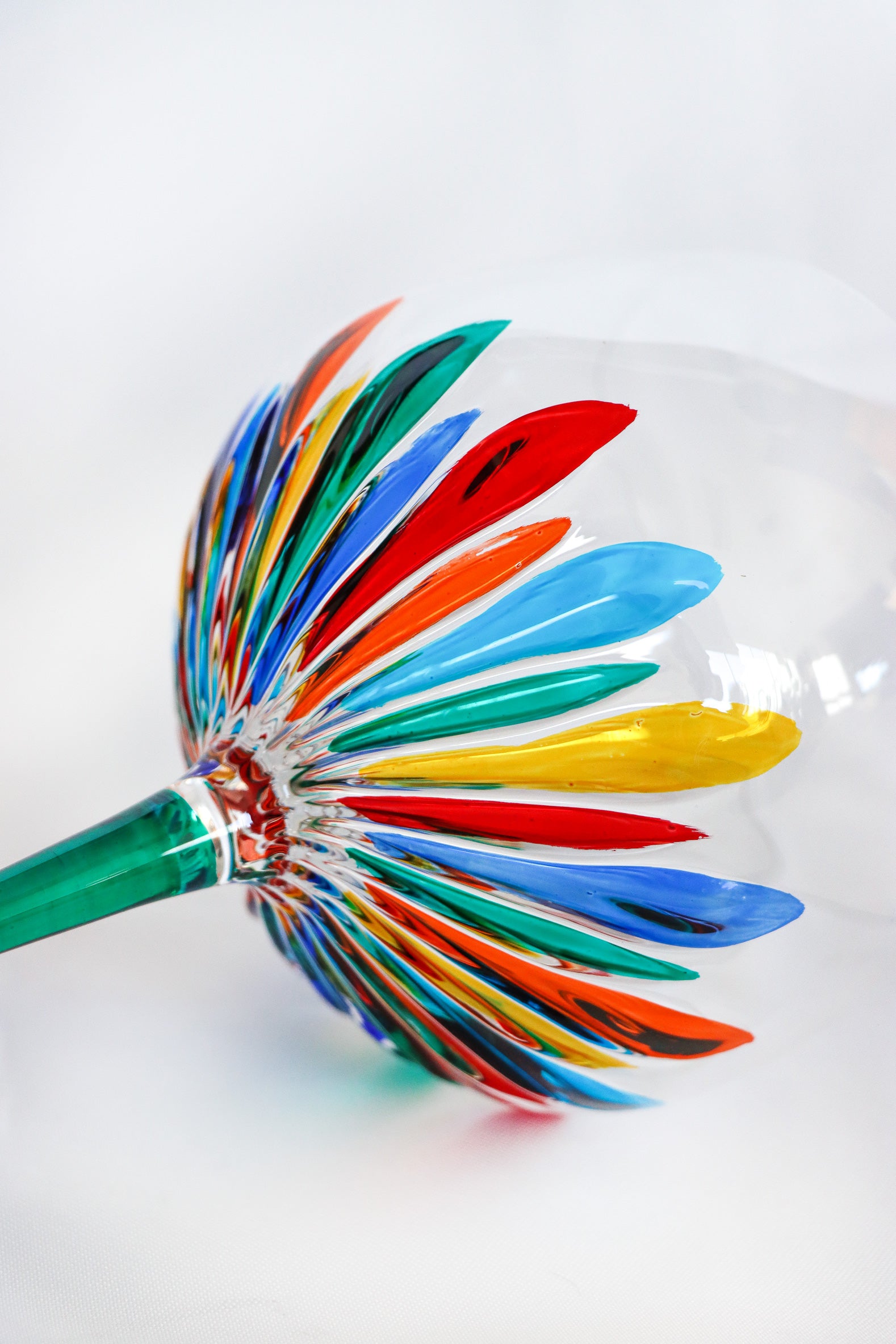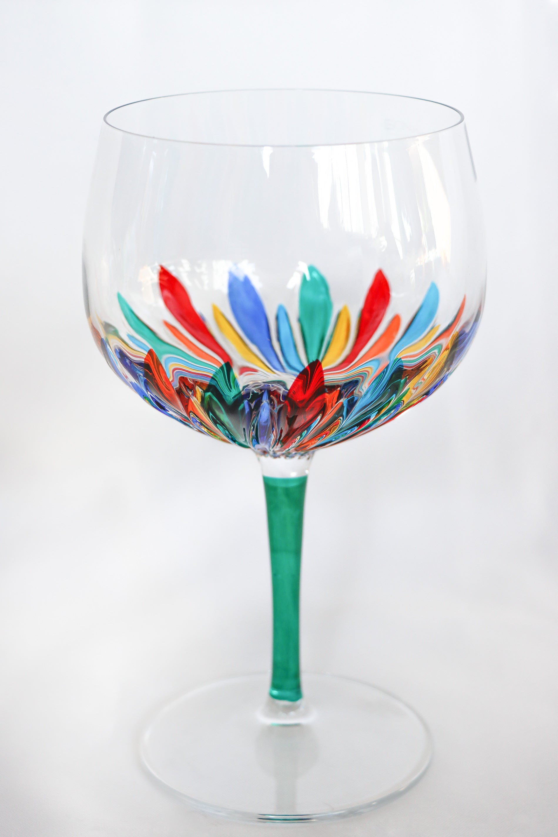 Copa de gin tonic tallada de colores. Hecho artesanalmente en Venecia.