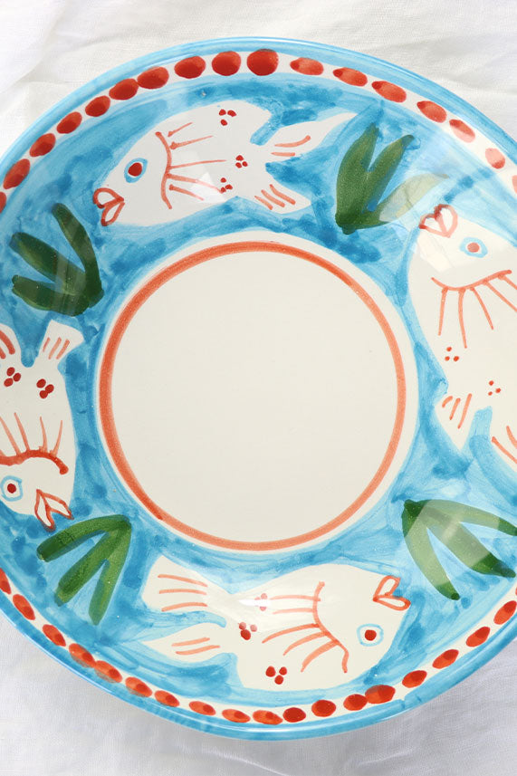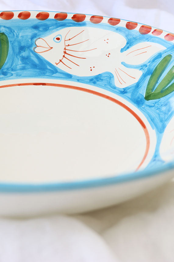Ensaladera 100% artesanal y pintada a mano con motivo de peces.