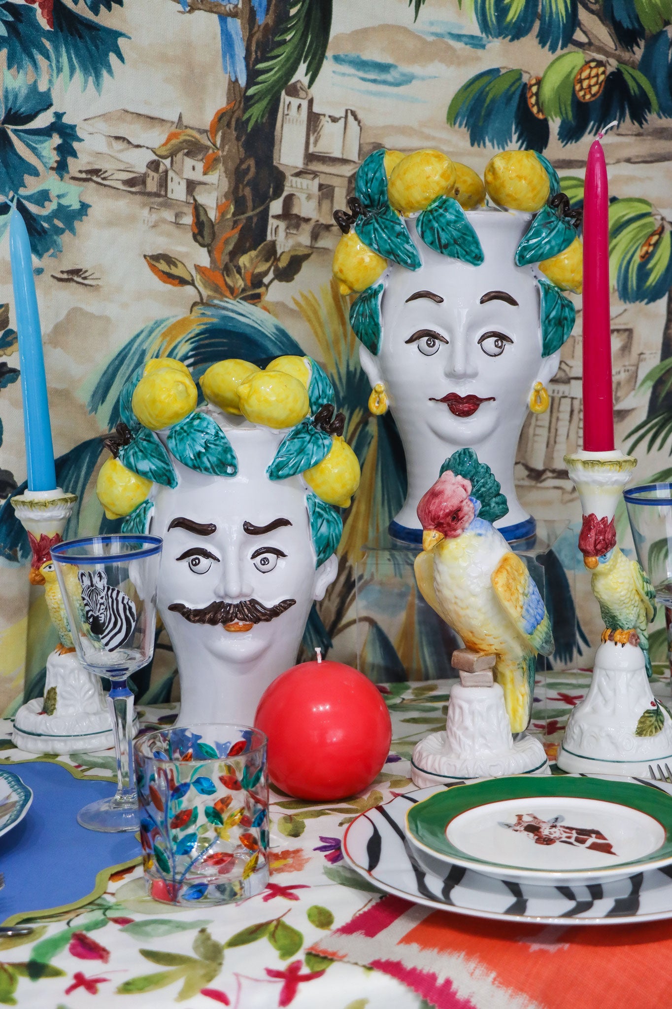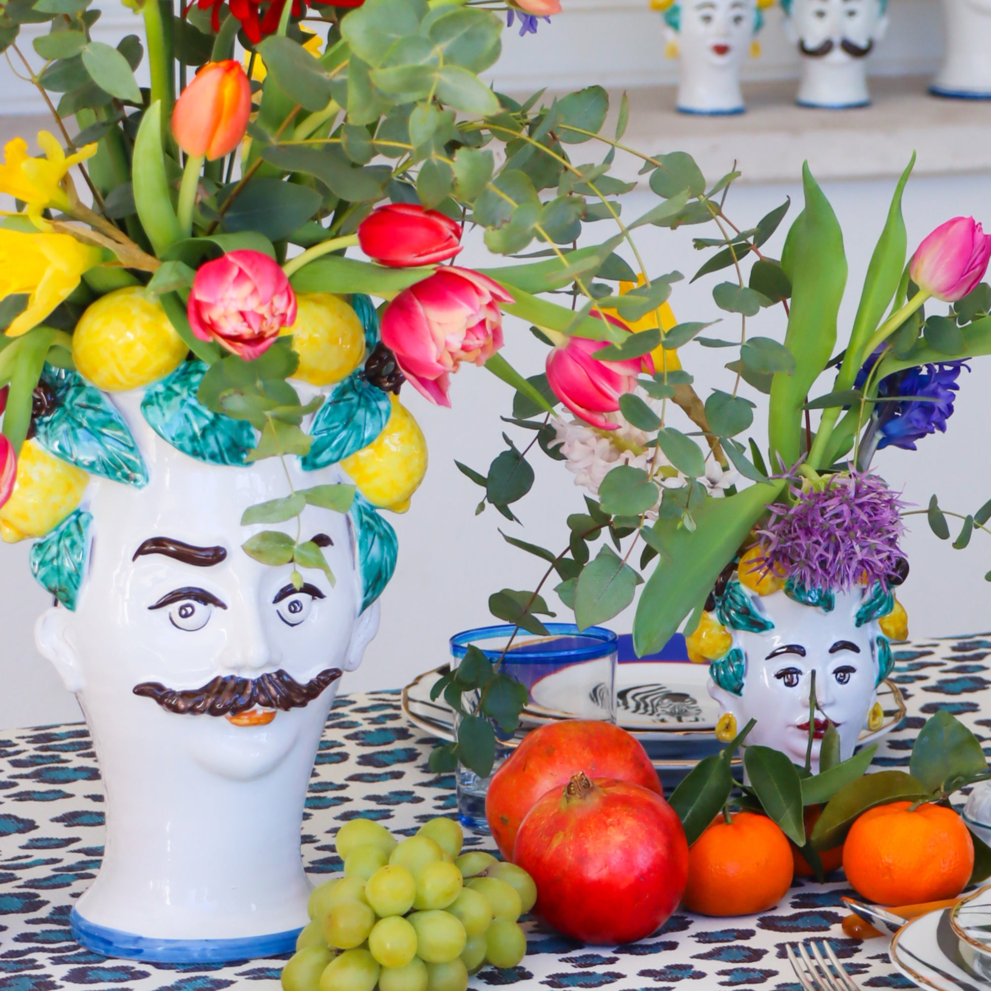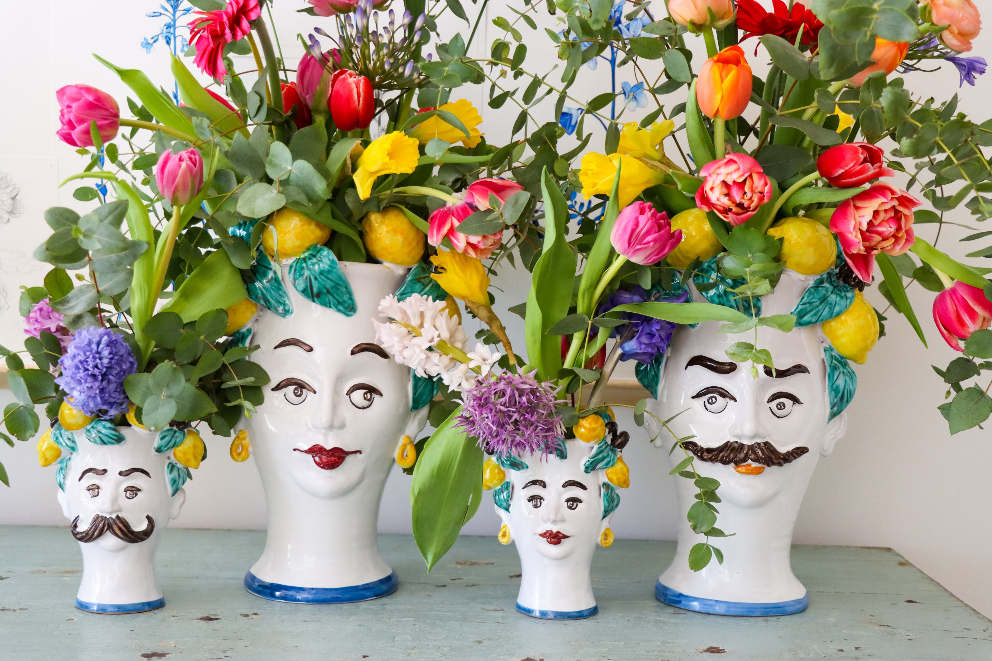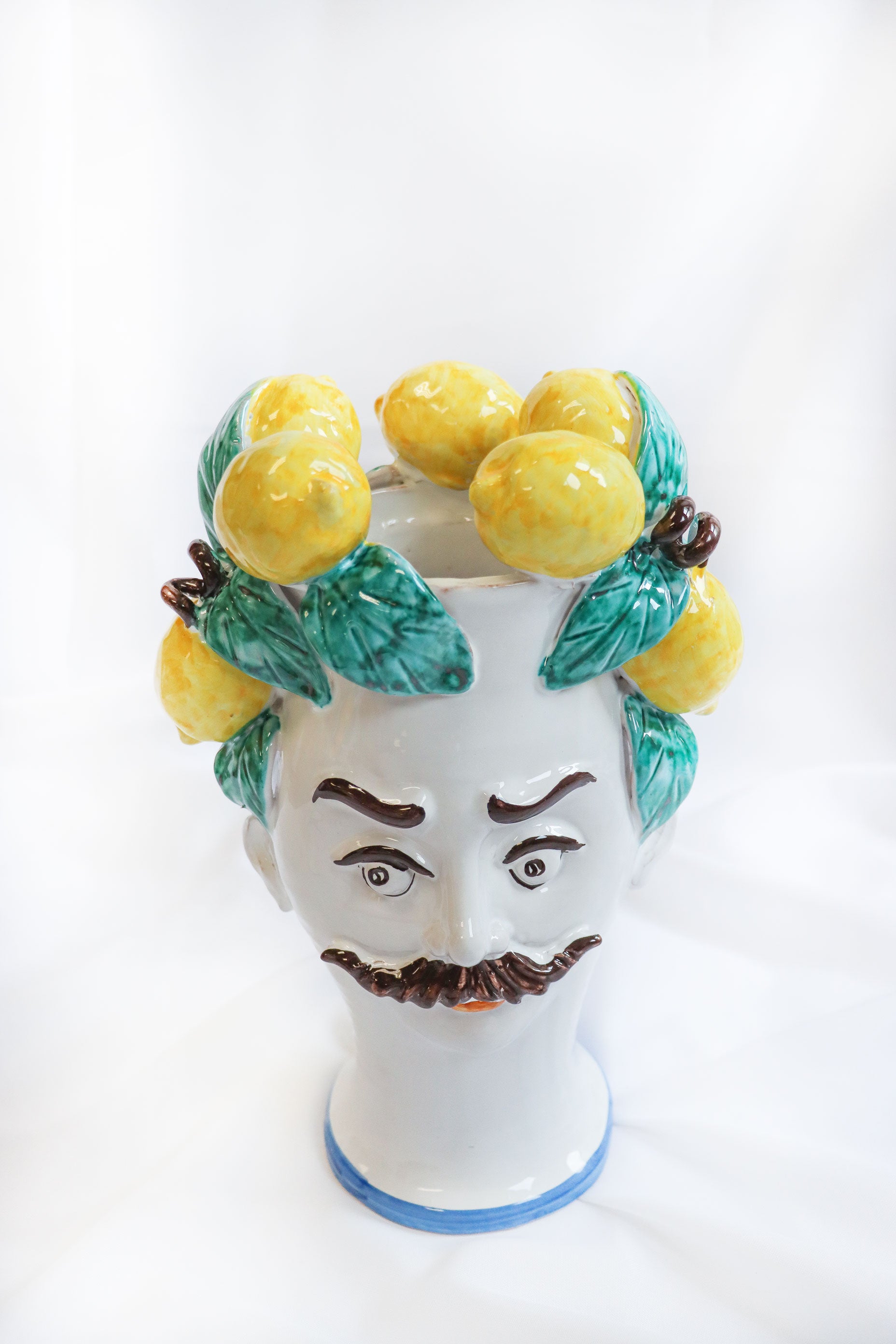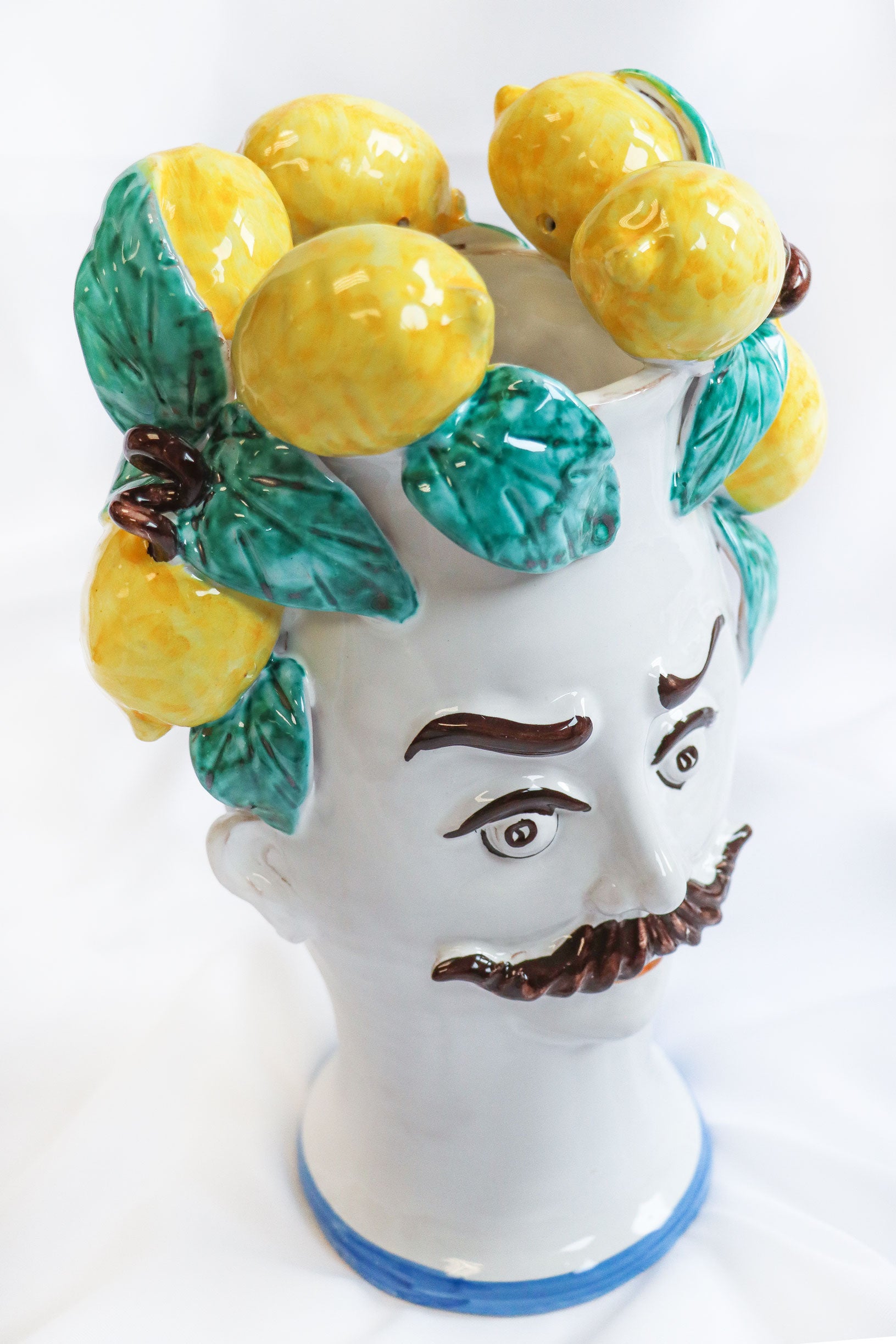 Jarrón de cerámica hecho a mano con rostro de hombre. Cada jarrón es único y se crea y pinta a mano.