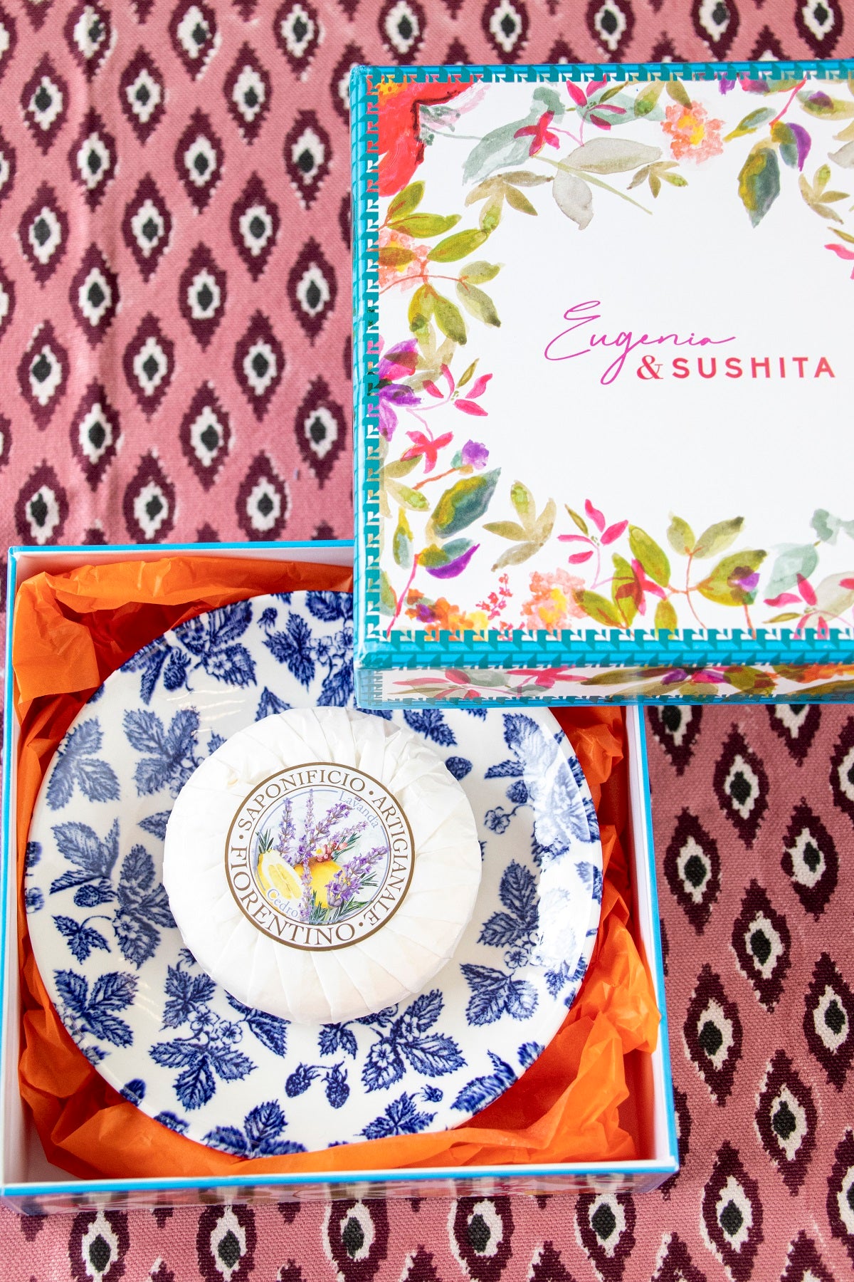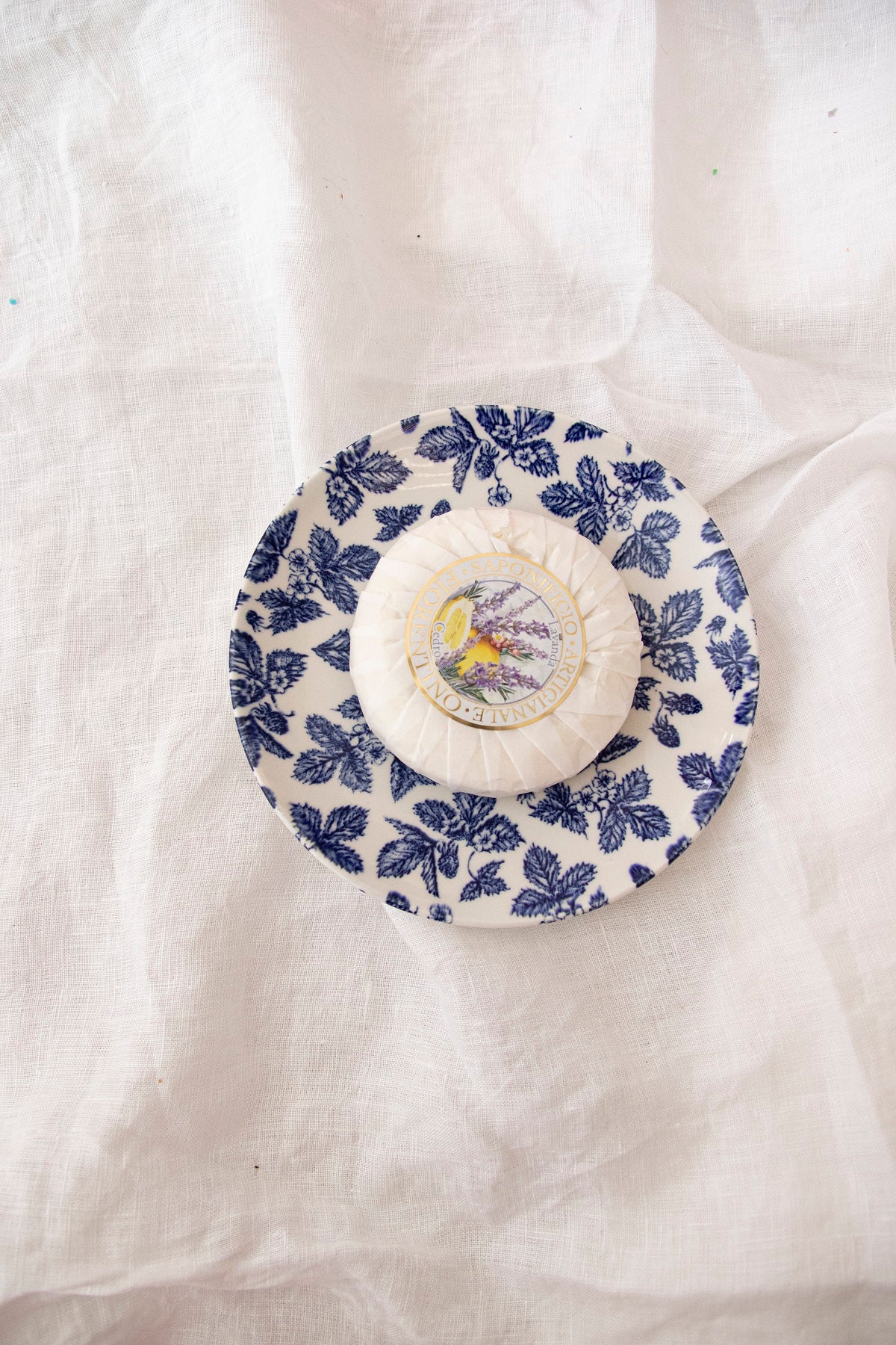 Plato azul + jabón aroma lavanda-cedro