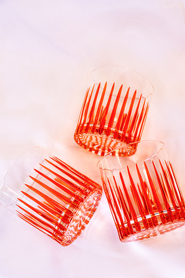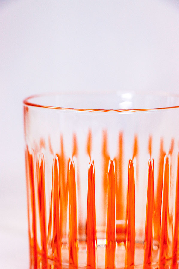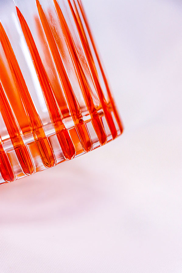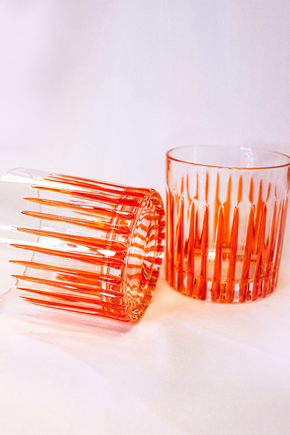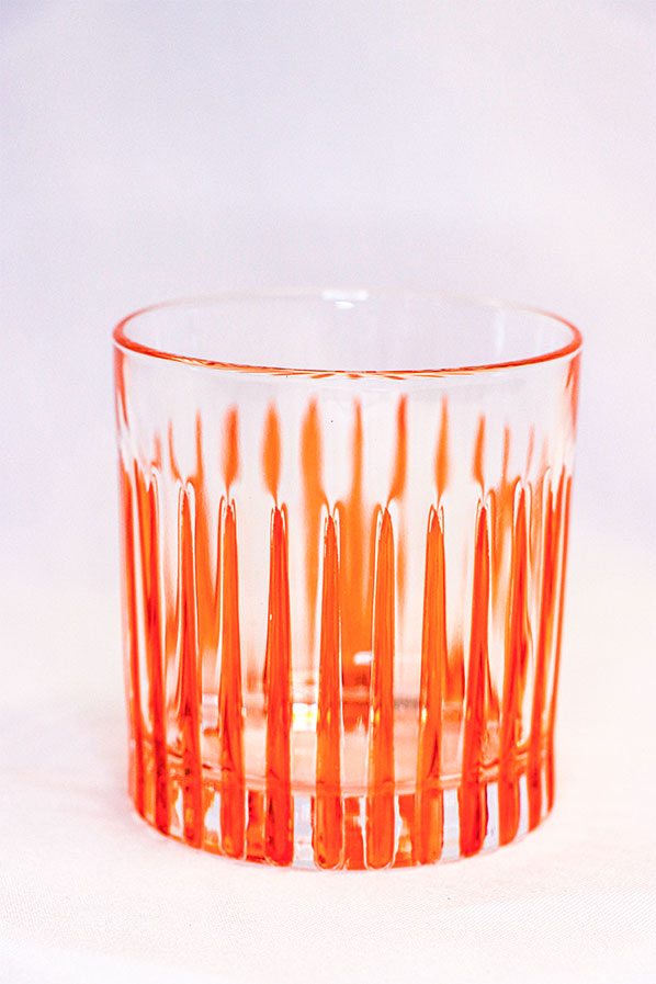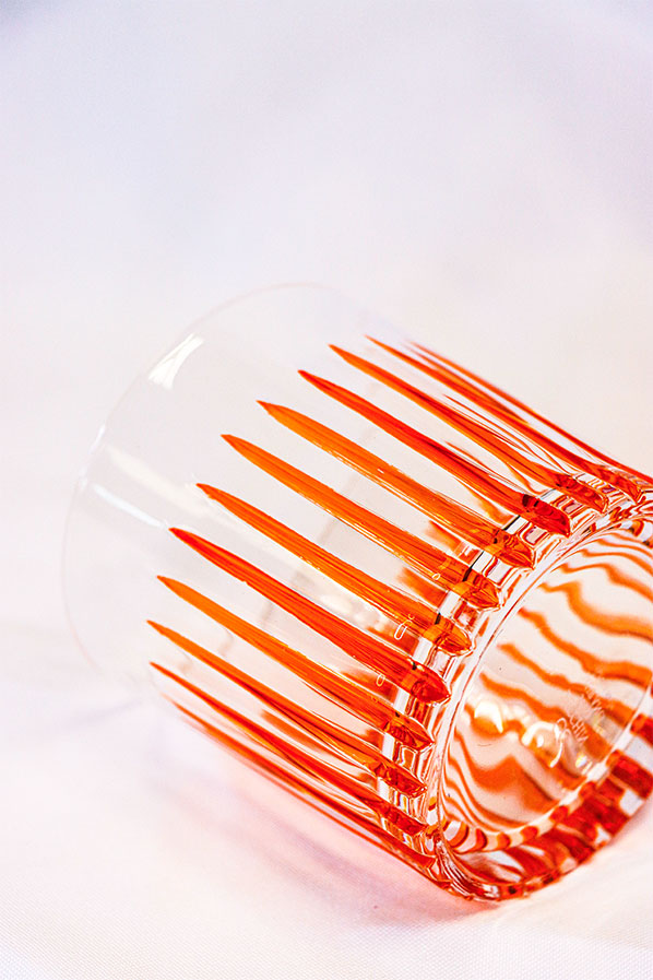Vaso tallado con decoración de rayas naranjas. Hecho artesanalmente en Venecia.