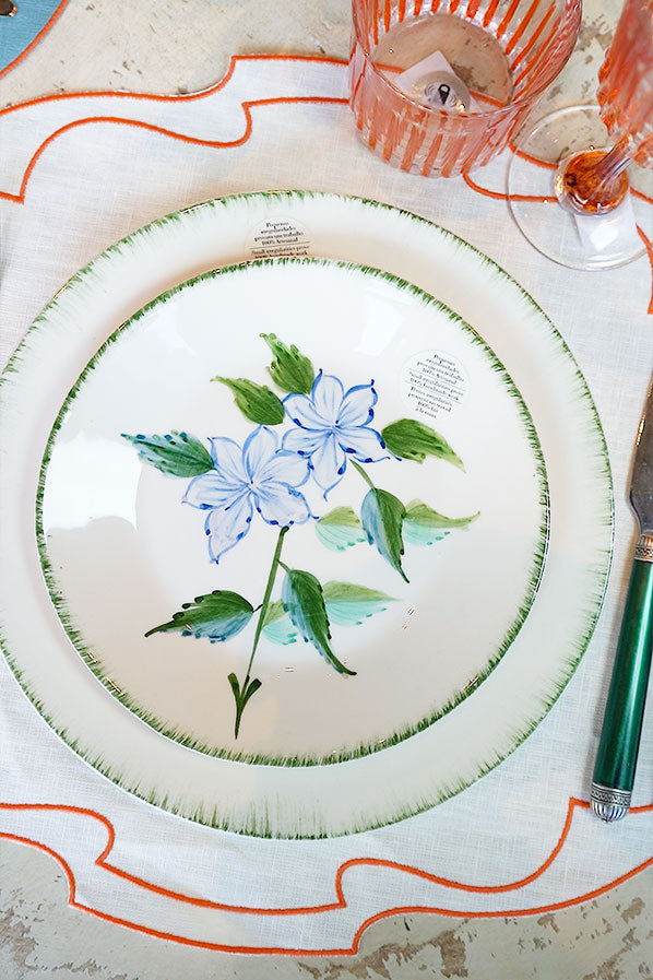 Individual blanco con ribete naranja. Bordado artesanalmente con tratamiento antimachas.