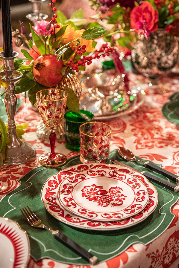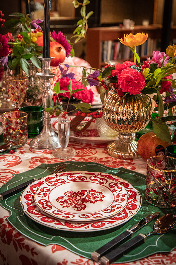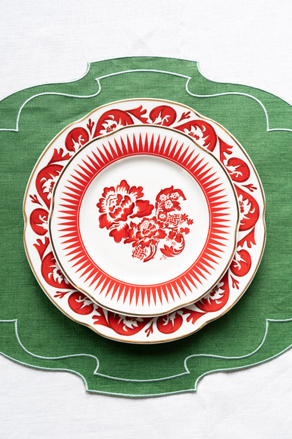 Individual de lino verde con tratamiento antimanchas. Este individual con forma de paréntesis tiene los extremos bordados a mano en color verde claro. Combina de la manera más elegante tu mesa y cualquiera de tus eventos.