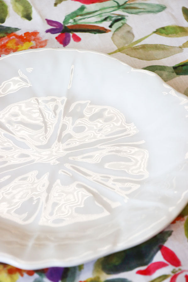 Set de 4 platos postre de melamina con motivos de hojas. Perfecto para todos tus eventos en el jardín o en el exterior.