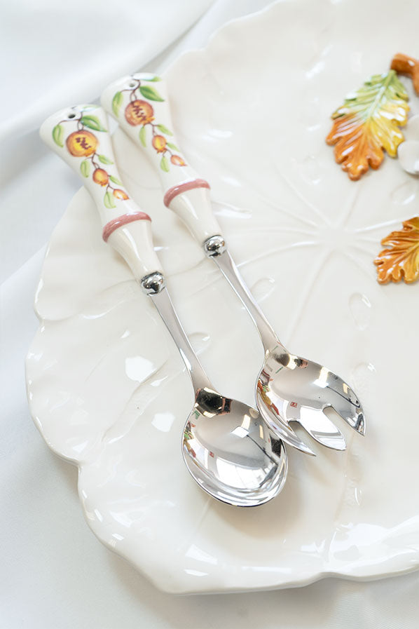 Set de cubiertos de servir para ensalada. Producto pintado a mano.