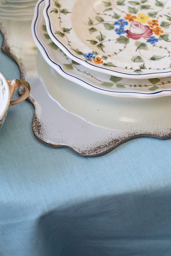 Un espejo decorativo envejecido que aporta luz y sofisticación a cualquier centro de mesa.