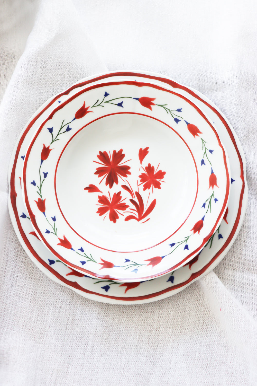 Set de 4 platos hondos de Sushita Rouge Collection, con bordes irregulares que añaden un toque de autenticidad artesanal, este diseño único en tonos burdeos cautiva la atención con su sofisticación y encanto. La flor central, meticulosamente dibujada, irradia una sensación de serenidad y armonía.