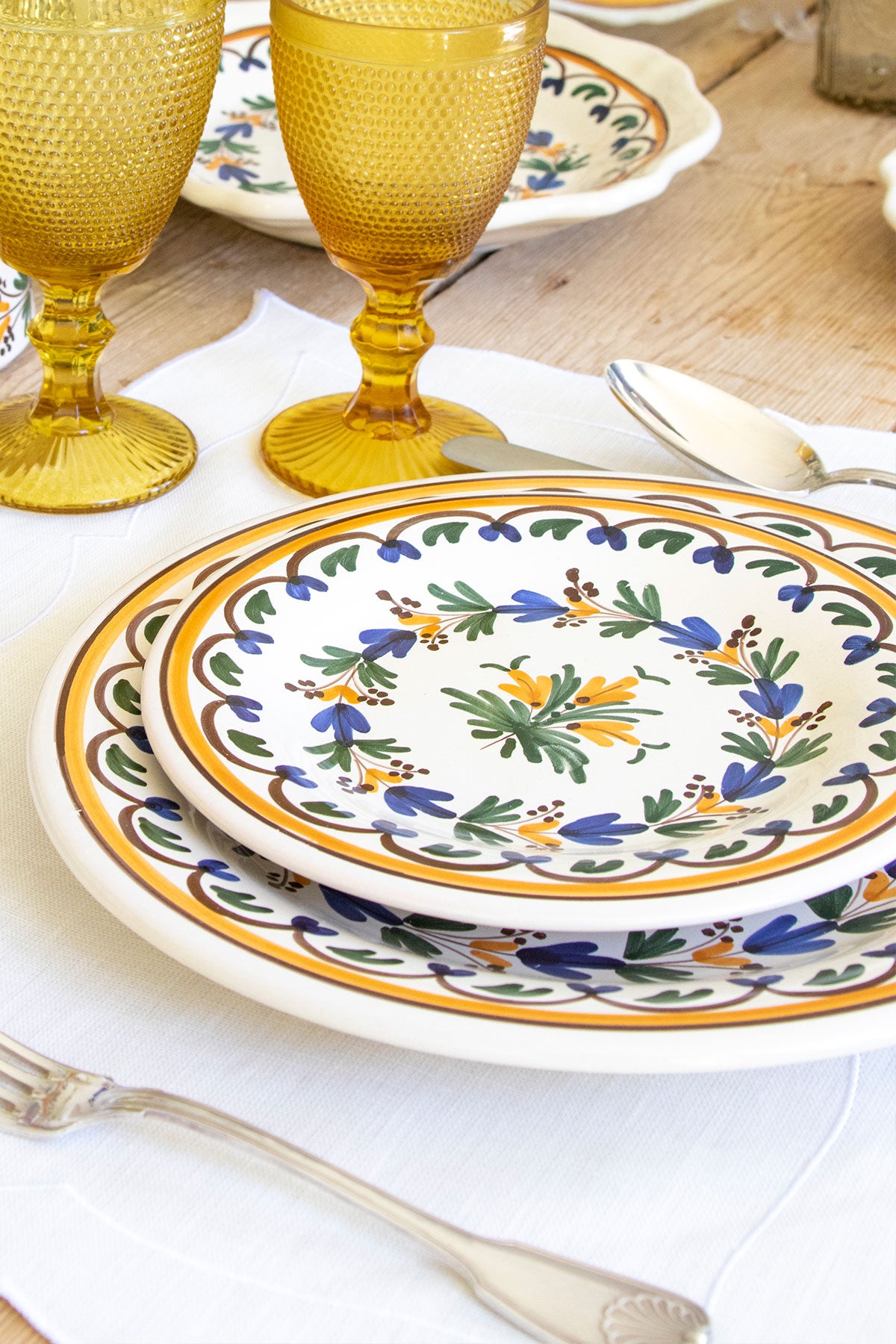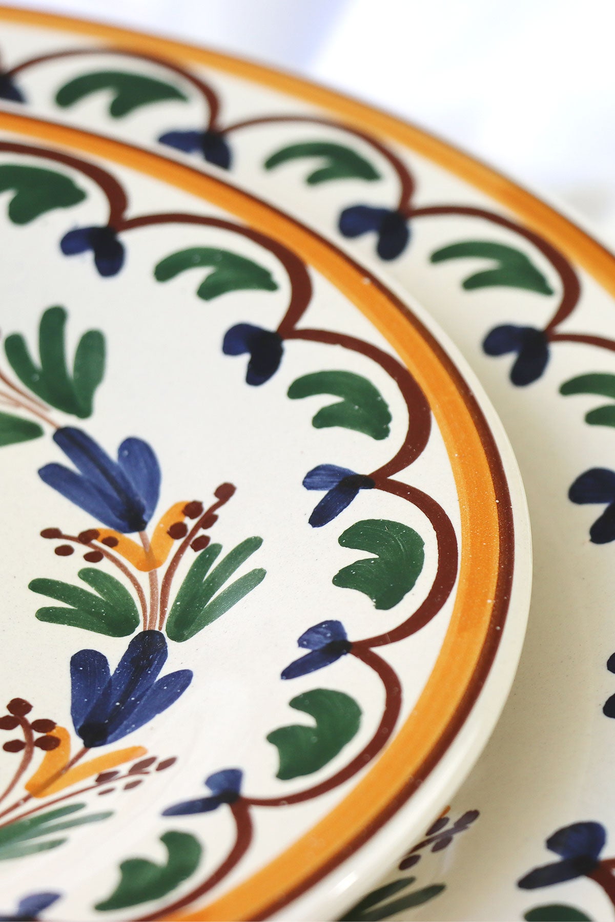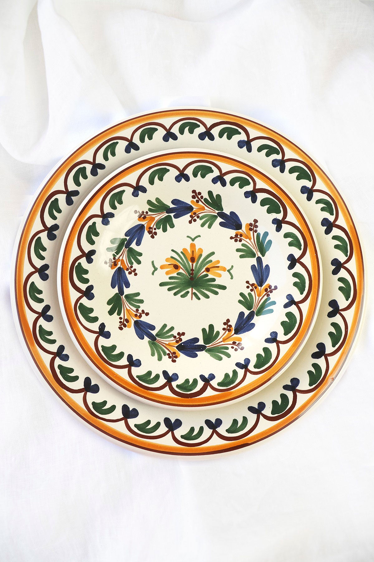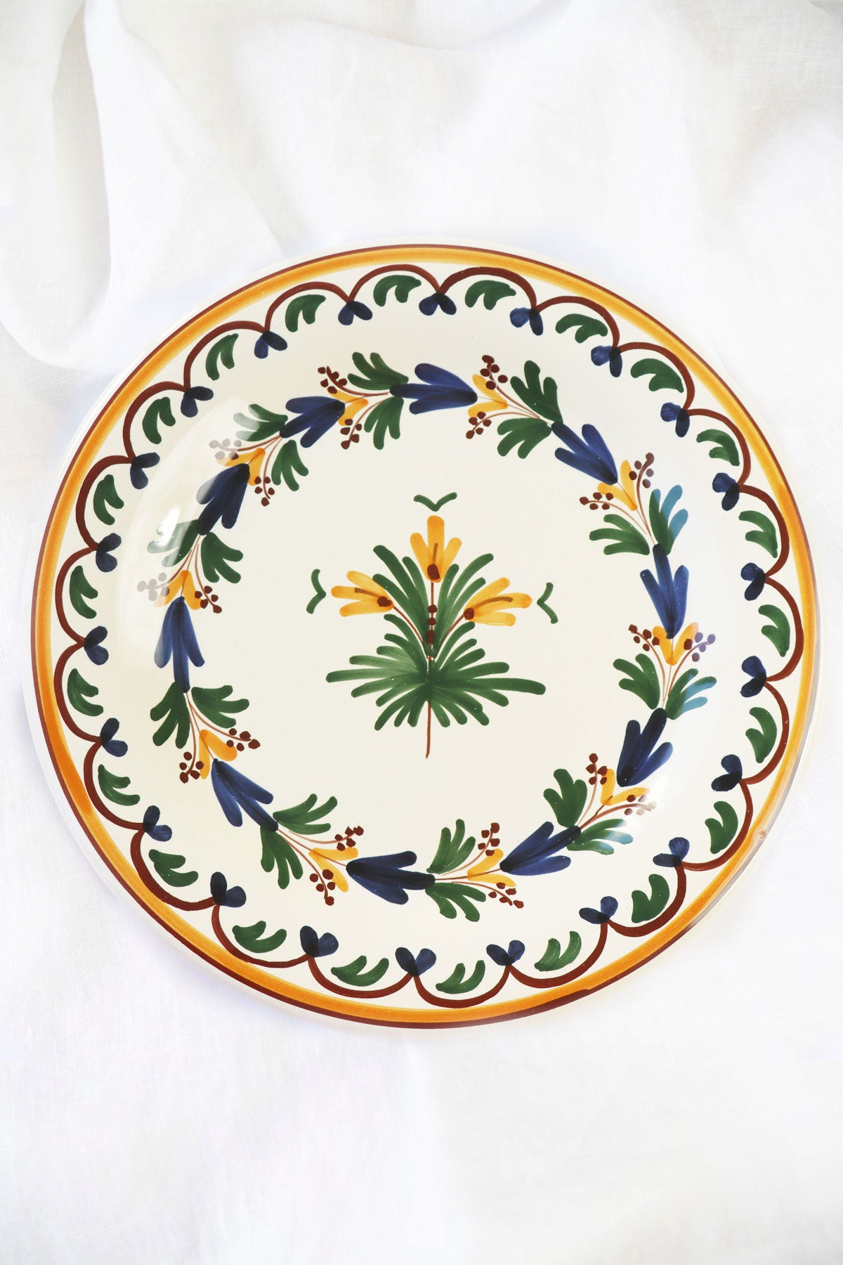 Plato de cerámica de Puente del Arzobispo diseñado por Eugenia Martínez de Irujo y Sushita. Basado en los diseños tradicionales de la cerámica de Toledo. Fabricación 100% Artesanal. Edición limitada.