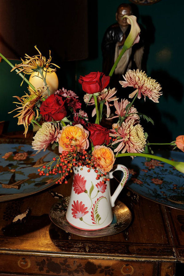 Descubre la exclusividad de esta jarra de edición limitada, diseñada por Eugenia & Sushita en colaboración con Marciano by Guess. Cada pieza ha sido pintada a mano por artesanos expertos, lo que convierte a cada jarra en una obra única e irrepetible. Su elaboración 100% artesanal combina diseño contemporáneo con el encanto de lo hecho a mano, transformándola en un objeto decorativo y funcional que eleva cualquier mesa. Una pieza icónica creada para quienes aprecian la belleza, la creatividad y la autenticidad en cada detalle.