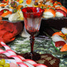 Copa en color rojo vibrante, delicadamente tallada a mano para resaltar su brillo y textura. Su diseño elegante combina tradición y modernidad, convirtiéndola en la pieza ideal para brindar en cenas familiares, celebraciones especiales o como regalo único.
