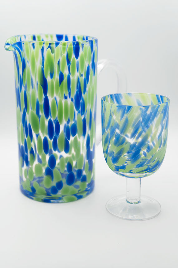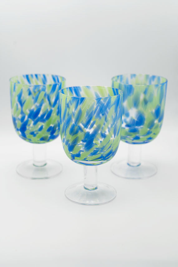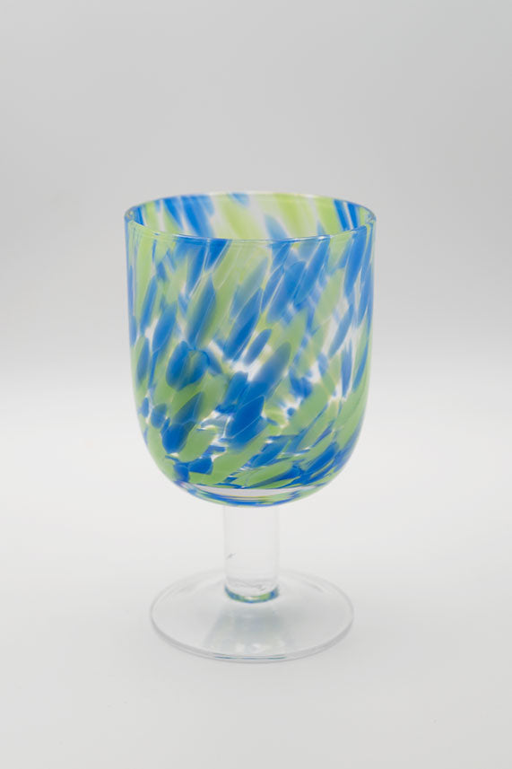 De estilo artesanal, nuestras copas de cristal moteado evoca el más ambiente veraniego, aunque también ideal para embellecer tu mesa durante todo el año con sus colores vivos. Cada pieza es única, el aspecto moteado puede variar de un producto a otro.