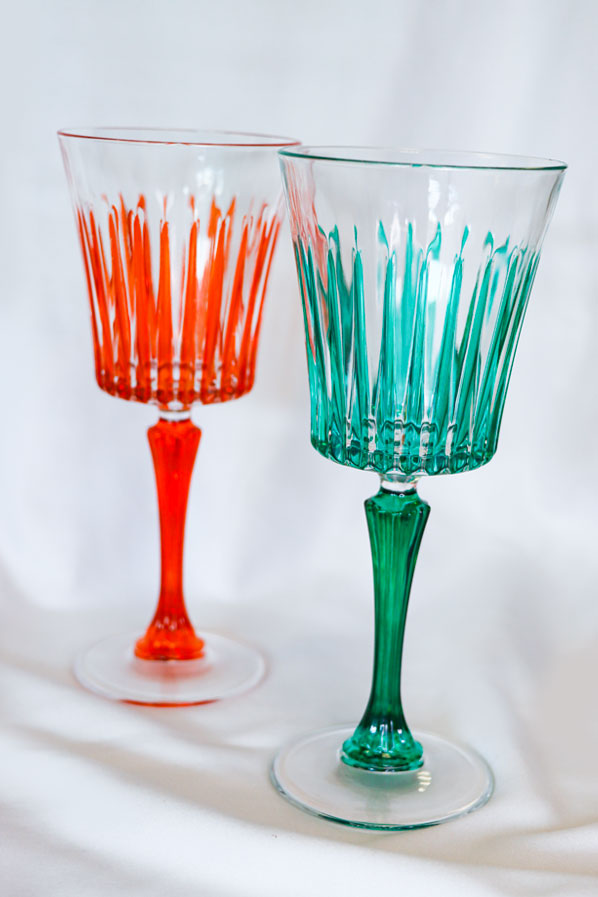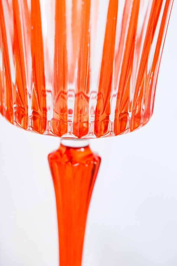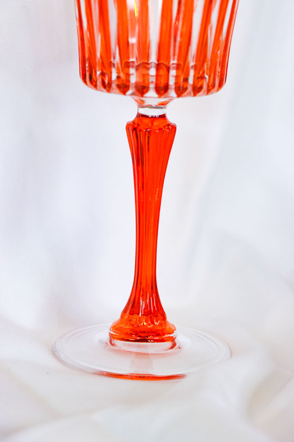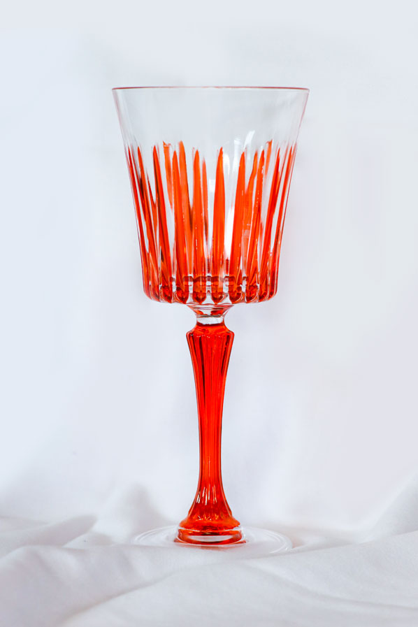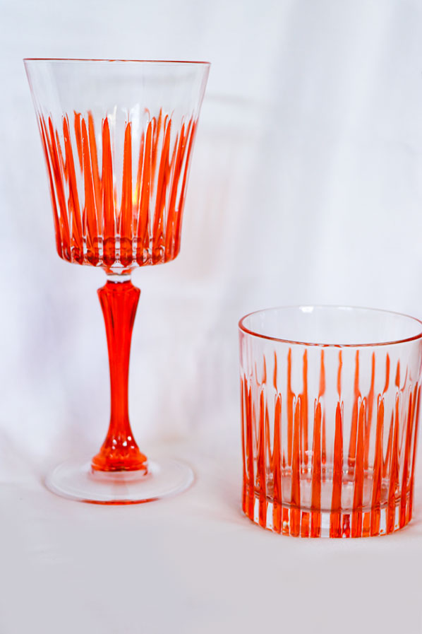 Copa tallada con decoración de rayas naranjas. Hecho artesanalmente en Venecia.