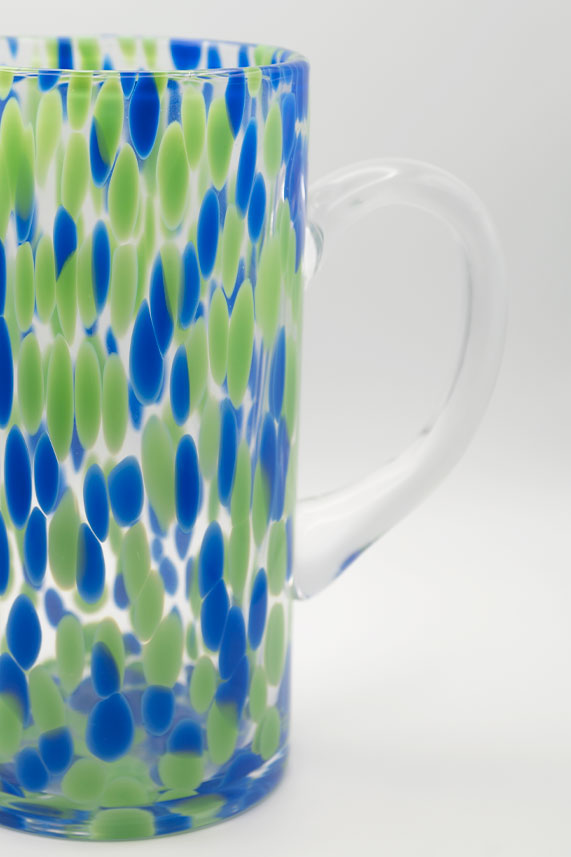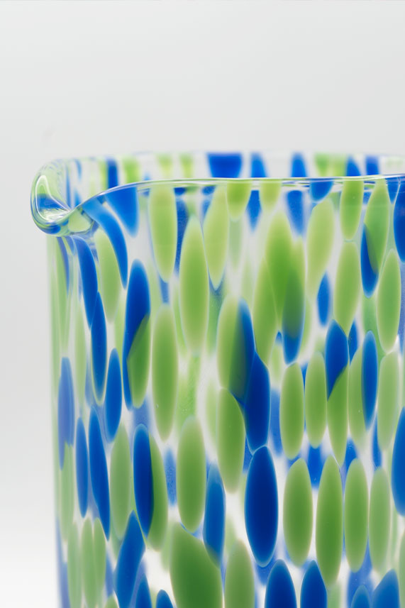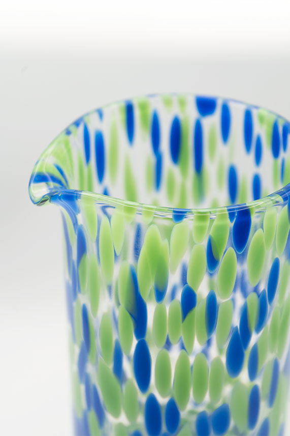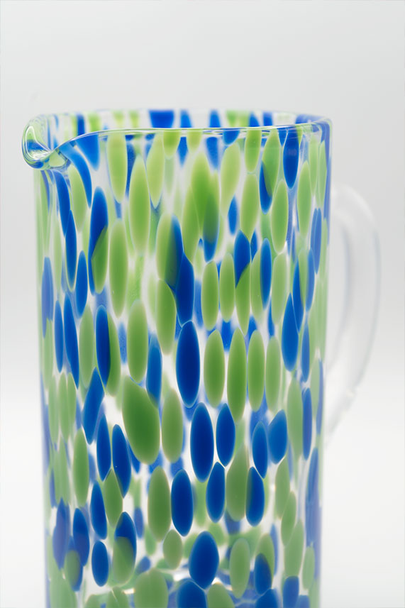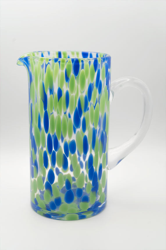 Elegante jarra de cristal de alta calidad destaca por sus delicadas motas en tonos azul y verde, que evocan el estilo veraniego y aportan alegría a cada mesa.