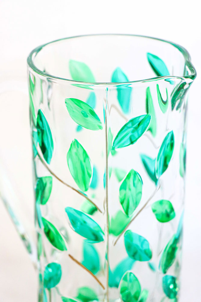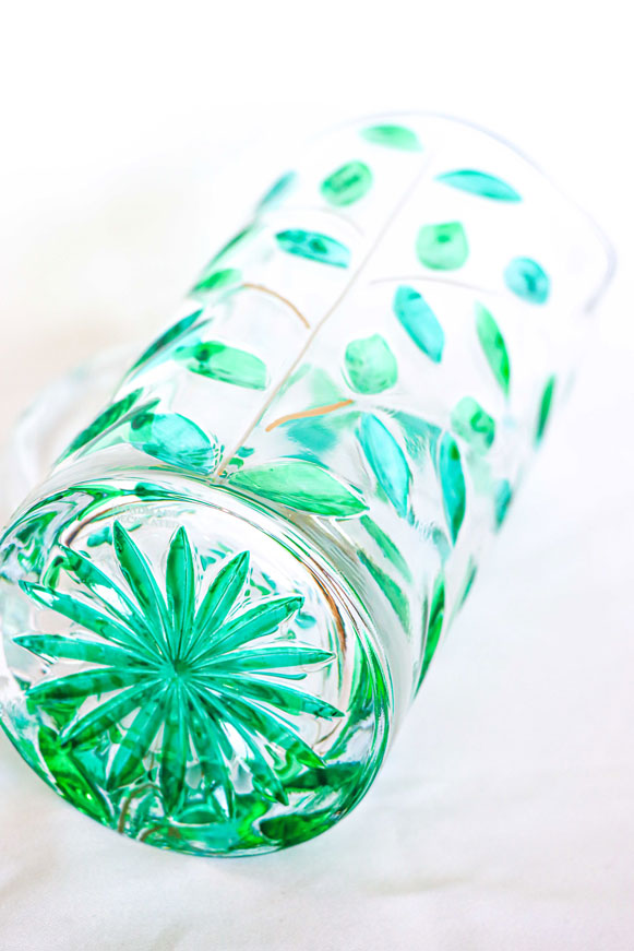 Jarra tallada hojas verdes