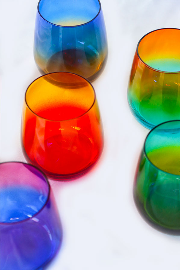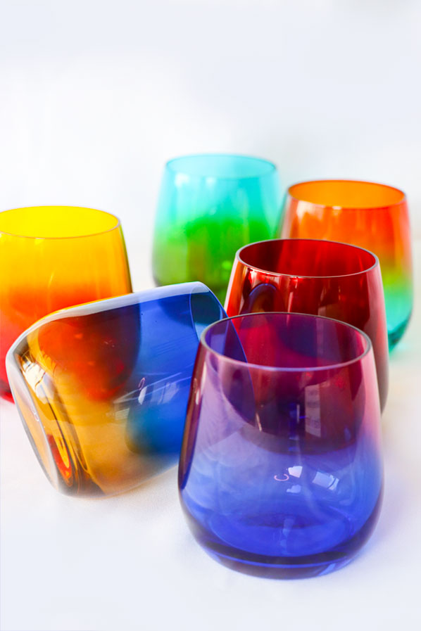 Vaso de cristal de Murano soplado. Elaborado artesanalmente con degradado de color. Todos los artículos son diferentes hechos a mano y únicos.