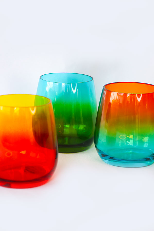 Vaso de cristal de Murano soplado. Elaborado artesanalmente con degradado de color. Todos los artículos son diferentes hechos a mano y únicos.