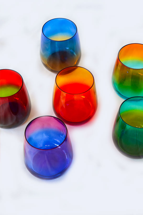 Vaso de cristal de Murano soplado. Elaborado artesanalmente con degradado de color. Todos los artículos son diferentes hechos a mano y únicos.
