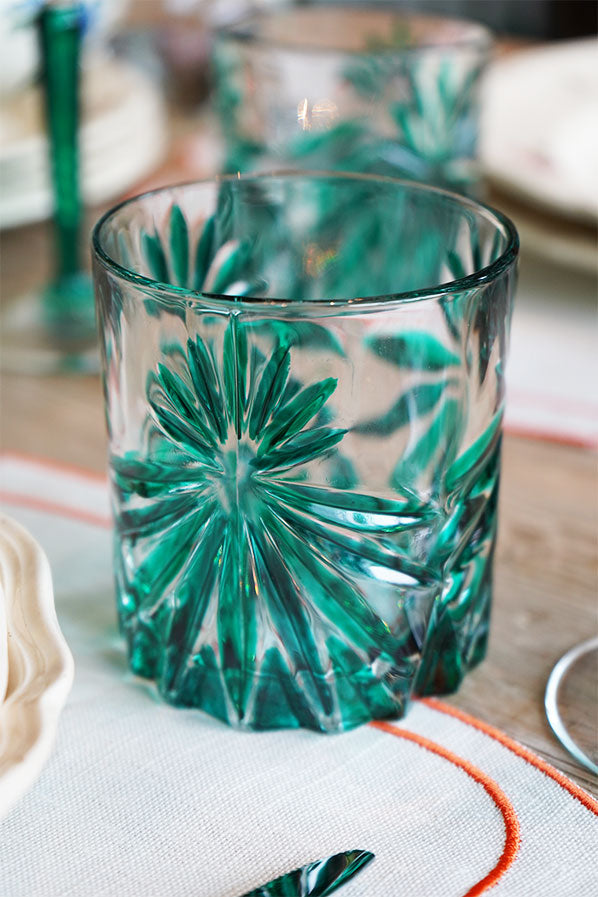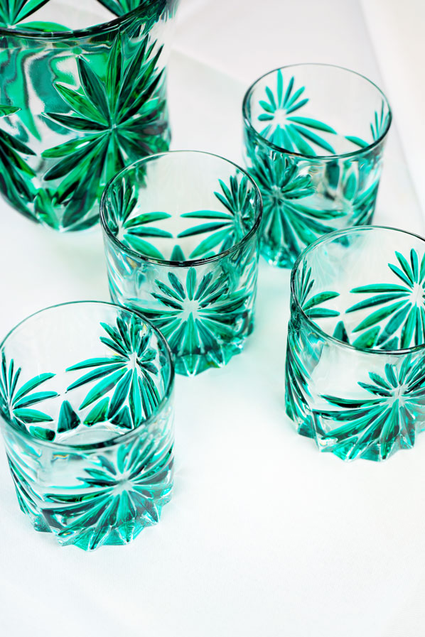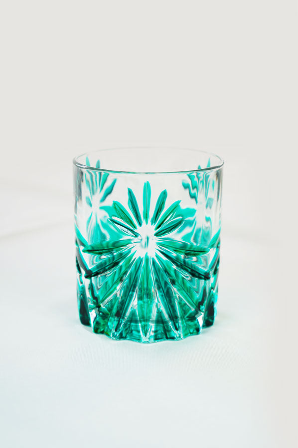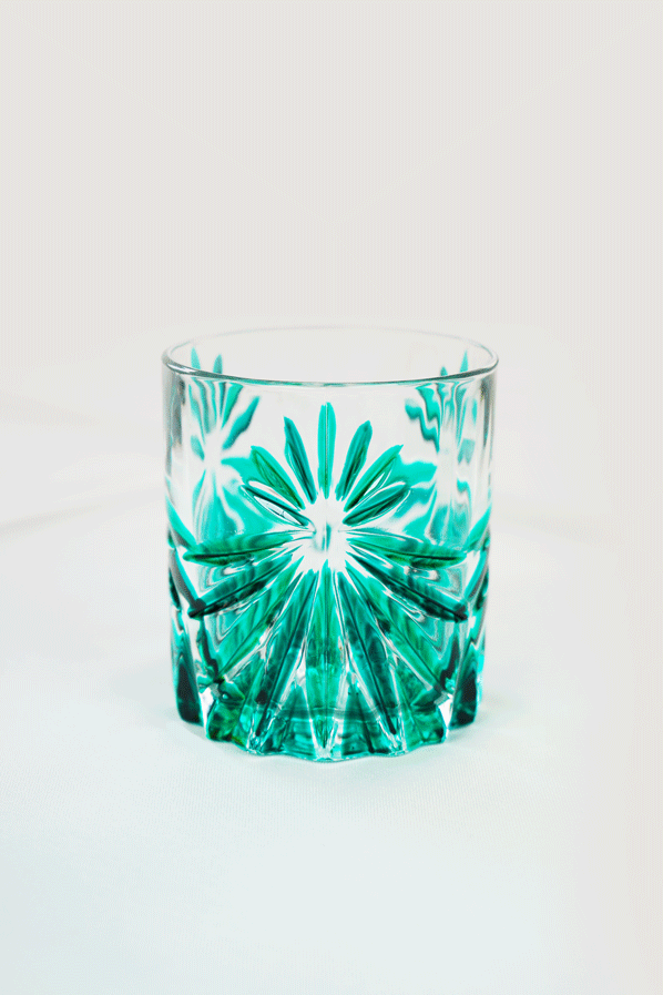 Elegante vaso de cristal tallado de origen italiano, con diseño artesanal.