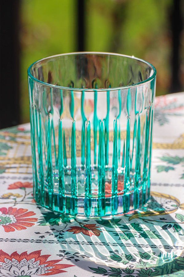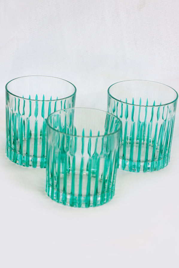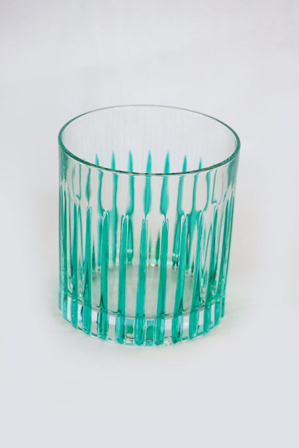 Vaso tallado con decoración de rayas verdes. Hecho artesanalmente en Venecia.