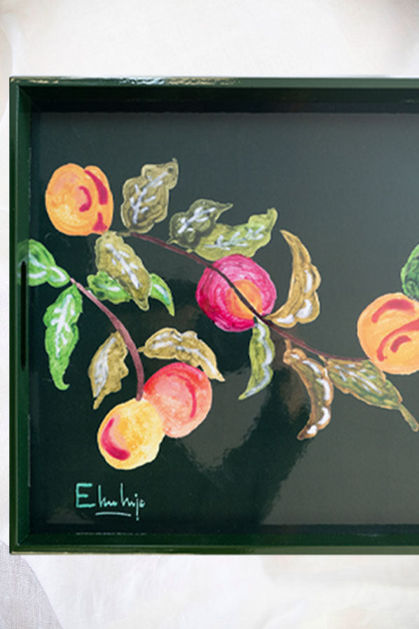 Bandeja Lacada con pintura de melocotones de Eugenia Martínez de Irujo – Edición Limitada y Firmada.